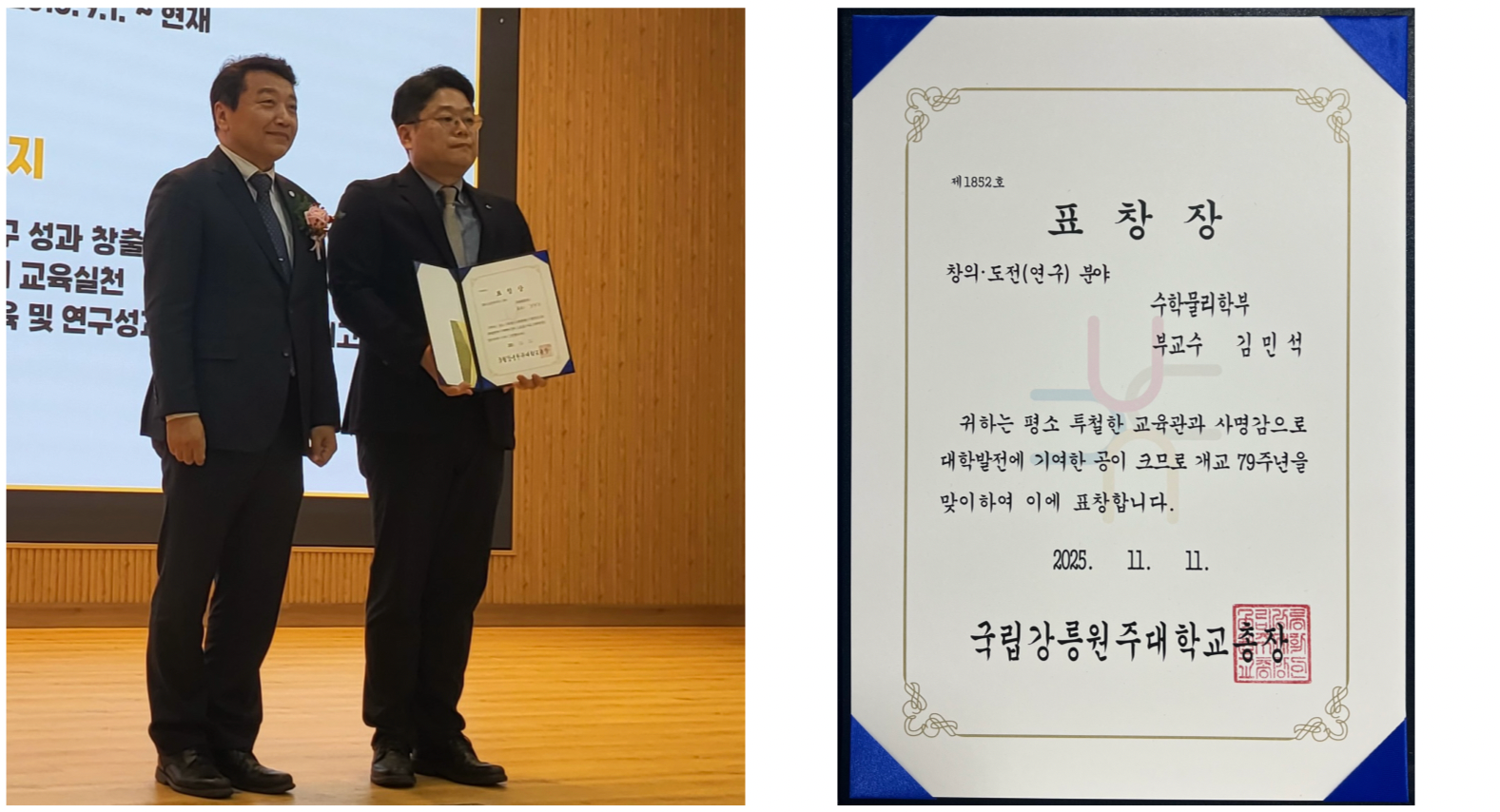 수학물리학부 물리·에너지전공  김민석 교수, '대학발전유공' 표창 (11월10일)