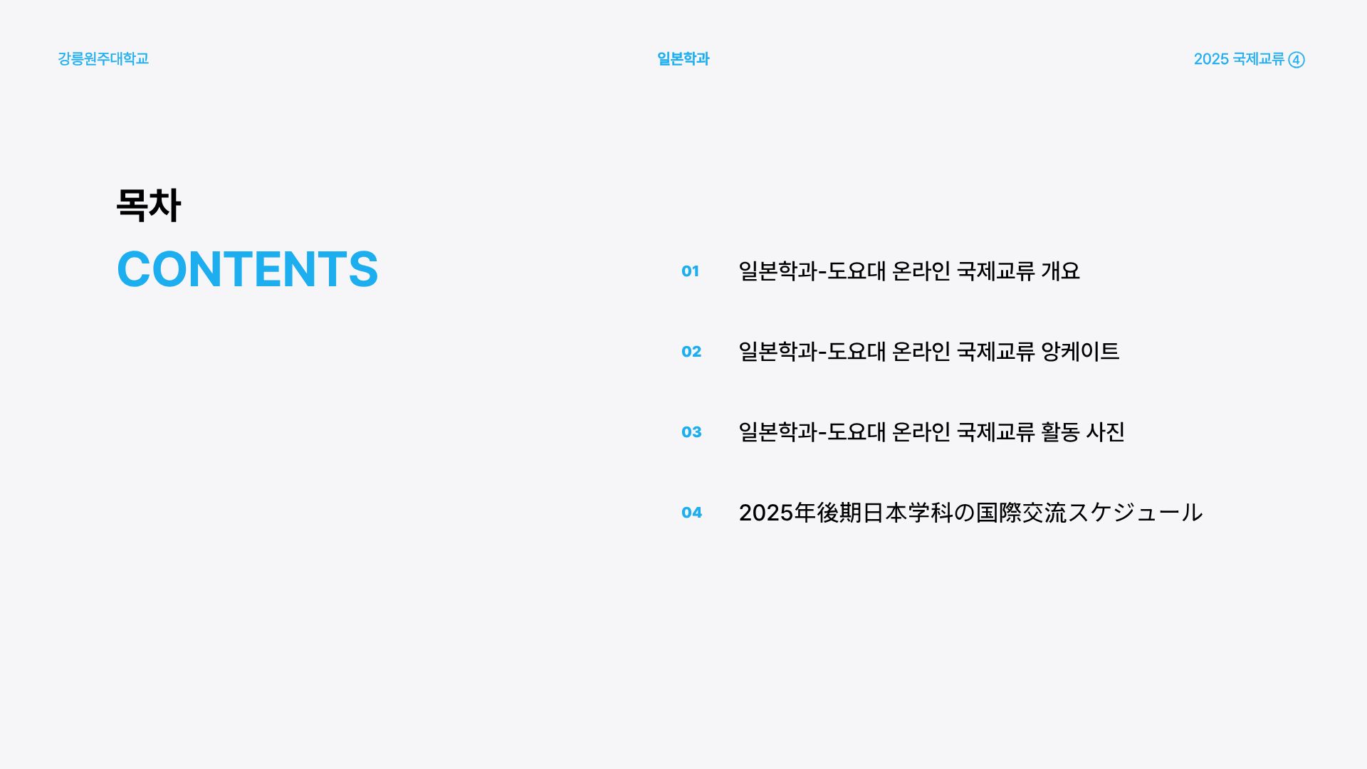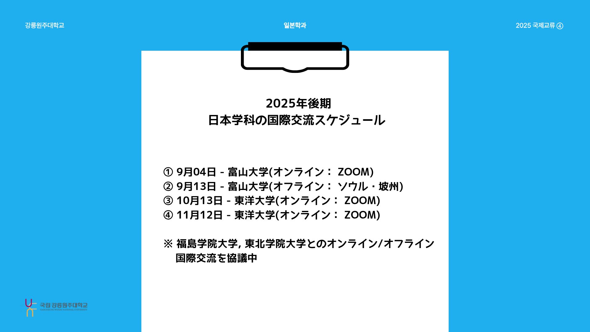fnctId=bbs,fnctNo=736 [국제교류] 2025 도요대학 국제교류 프로그램 온라인 교류 보고서 글번호 319000 작성일 2025.10.21 작성자 엄태봉 조회수 99 첨부파일 첨부파일이(가) 없습니다.