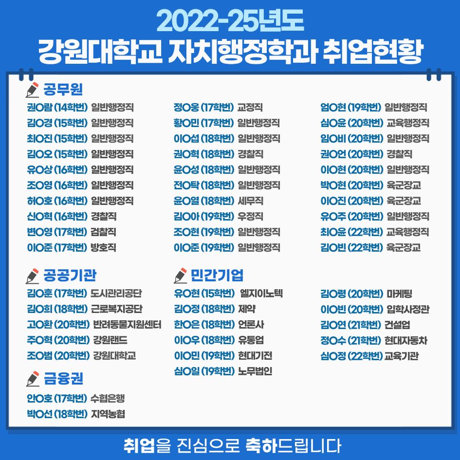 2025학년도 자치행정학과 자행인의 밤 행사 개최1. 일시: 2025년 11월 26일 (수)2. 장소: 국립강릉원주대학교 인근 음식점3. 내용: '자행인의 밤' 행사 개최 및 구성인원 간 친목 도모2026.02.23 -